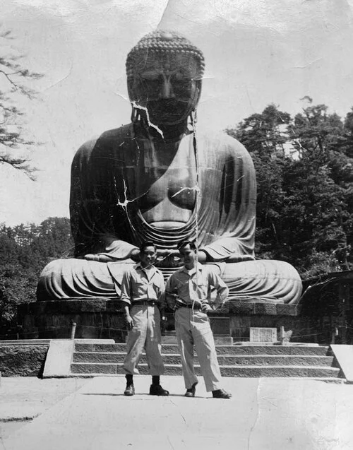 Well, after this 20 day ride on the troop ship, landed in Tokyo, Yokohama. I remember my first impression - my mother taught me how lovely the country was. How beautiful country and everything about Japanese. She never went back to Japan since she left. It was her promise to do so, she never did. So I got the impression that it was a very beautiful country, that people were good, so when this troopship landed at this port at night. The lights flicker around the wharf there, and they were starting to move around and everything and then the lights came on the ship and focused and those crowds of people skirting around a bit of food or whatever, being thrown overboard by the troops and the troopship. And I remember seeing an elderly man fighting over a piece of scrap or something like that. And this is my first glimpse of Japan — people fighting over food. They shipped me to Camp Zama, which is near Yokohama.