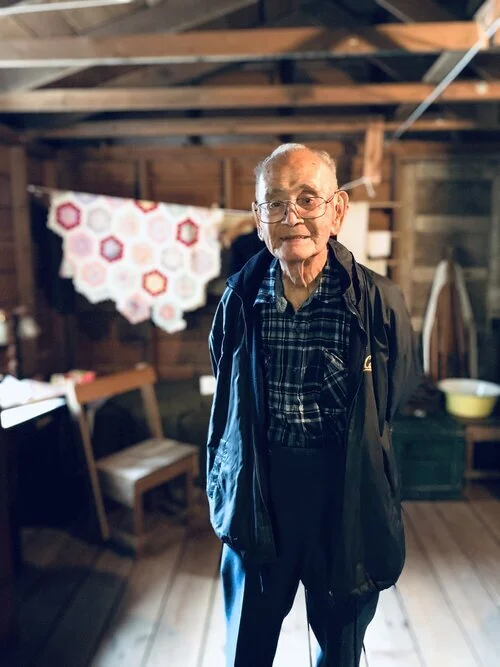 Jiro Oyama inside the barracks room at the Japanese American Museum of San Jose.